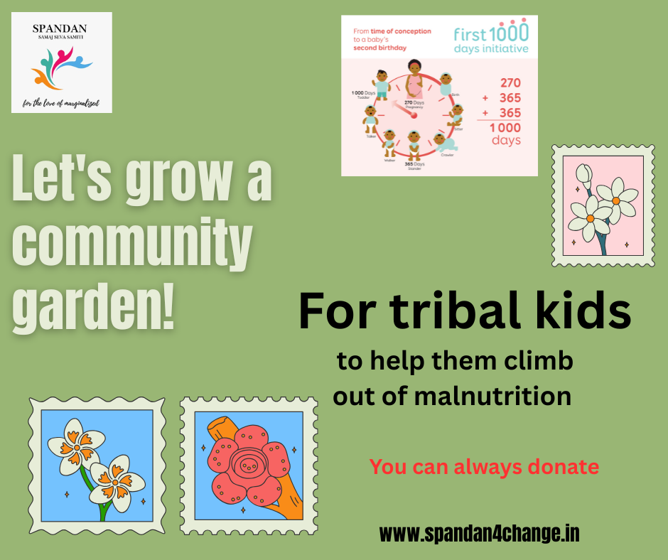 " In these times when household hunger peaks we are considering to help tribal mothers of malnourished children grow their own vegetable gardens. They will grow and eat and also share vegetables with their neighbour, mid day meal schemes and anganwadis. That's the way the nutrition gap will be bridged. The vegetable kit for one family will cost INR 50 we need to help 3000 families.
