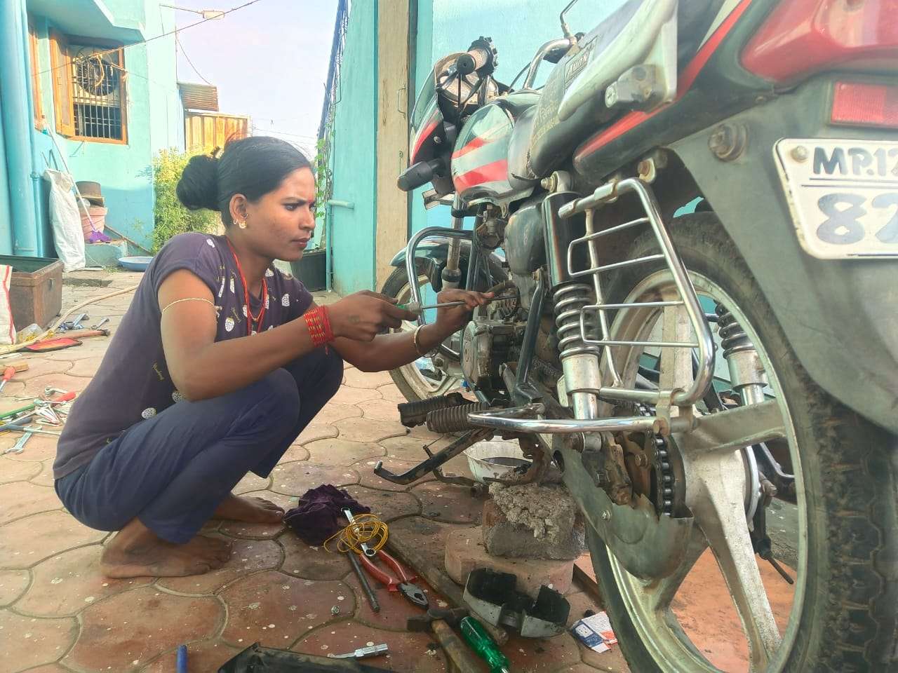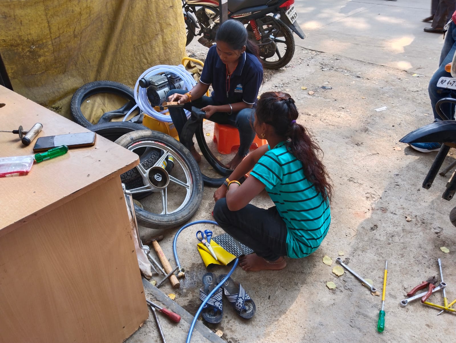 The idea was realized with 25 girls came forward to learn the motorcycle and mobile repairs and set up their workshops at home. Two of them decided to set up a garage in a nearby town. They received rounds of training and gradually gained skills and confidence. The organization's support was to provide them with basic repair gadgets and spares to begin their enterprise.
